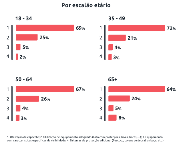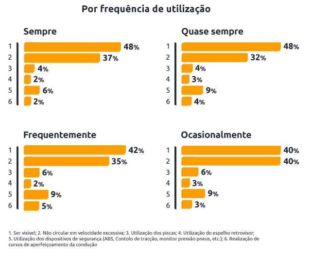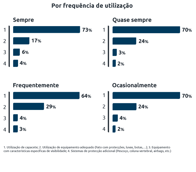 Os resultados revelam não só a percepção dos motociclistas sobre a sua própria segurança, mas, também, as medidas ativas e passivas que consideram mais importantes para reduzir os riscos a que estão sujeitos ao circular nas estradas.